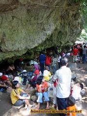 gua dibawah bebatuan raksasa. Sambil melihat mereka piknik, saya