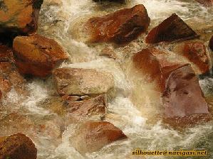Ada perbedaan yang mencolok pada air terjun ini dibandingkan dengan air terjun lain. Perbedaan tersebut terletak pada bebatuan yang didominasi warna merah pada sungai dimana limpahan air terjun ini mengalir. Sama sekali tidak terlihat bebatuan berwarna hitam yang umumnya terdapat pada air terjun lainnya. Mungkinkah air yang mengalir pada air terjun ini kaya akan unsur besi atau tembaga sehingga menimbulkan warna merah atau mungkin karena jenis tanah/bebatuannya itu sendiri ? Bongkahan batu besar dengan ukuran yang lebih besar dari manusia dewasa juga banyak terdapat dilokasi ini, yang juga dominan berwarna merah bata.