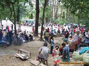 tebing, bahkan sampai di bawah air terjun penuh dengan orang.