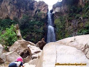 Perlu usaha tersendiri melewati bebatuan besara untuk mencapai atau melihat dasar dari air terjun Coban Talun