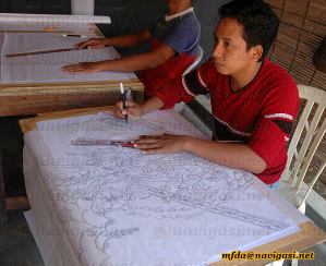 “penulisan” pada pola/design dengan menggunakan wax