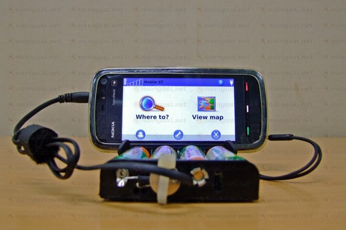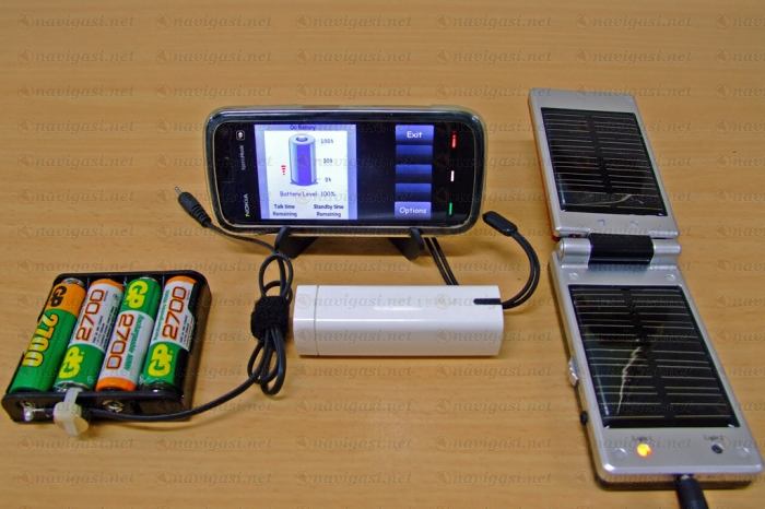 Jadi saat kita mencharge dengan ke 4 baterai di atas, aplikasi GMXT masih bisa diaktifkan tanpa perlu dimatikan. Bentuknya yang ringkas masih muat dalam genggaman bersama ponselnya atau panjangkan saja kabelnya dimana ke 4 batterai dalam saku, sementara kita bisa bertelepon ria dengan ponsel.