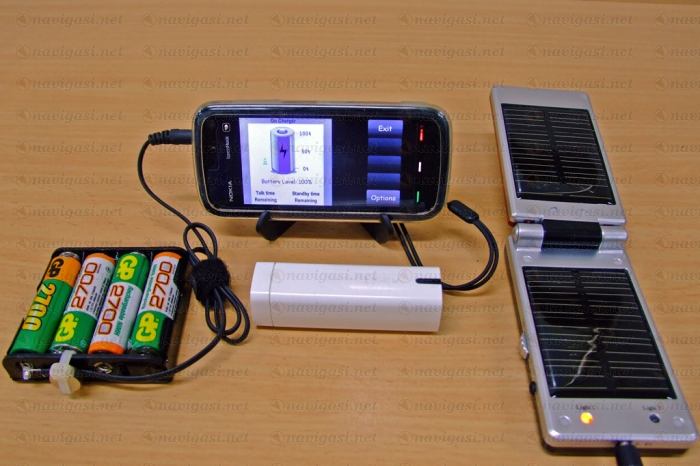 Namun yang sudah saya buktikan adalah dari baterai Nokia 5800XM ini dari kosong sama sekali lalu di charge menggunakan ke 4 baterai dalam susunan di atas, berhasil mengisi ulang hingga 100% ["Battery full, unplug the charger" muncul dilayar]. Jadi 8 jam penggunaan GPS dengan Nokia 5800XM (bahkan lebih) bukan mustahil terjadi, kan? Sisanya masih bisa dipakai untuk recharge lagi koq.