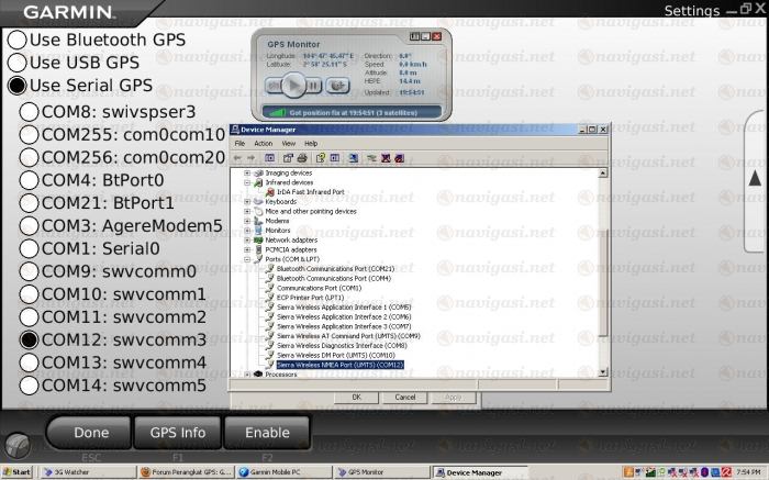 Coba dibuka dan dicari di Device Manager pada port mana gps tersebut aktif. Seperti contoh gambar2 (perhatikan windows Device Manager yang terbuka) di atas, NMEA port berada di COM12.