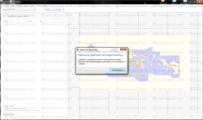 Mas Gaus, kok waktu saya buka pakai mapsource dan pilih map DEM yang baru dibuat, keluar message "Mapsource application stop working" a problem caused the program to stop working correctly. Windows will close the program and notify if a solution is available.
