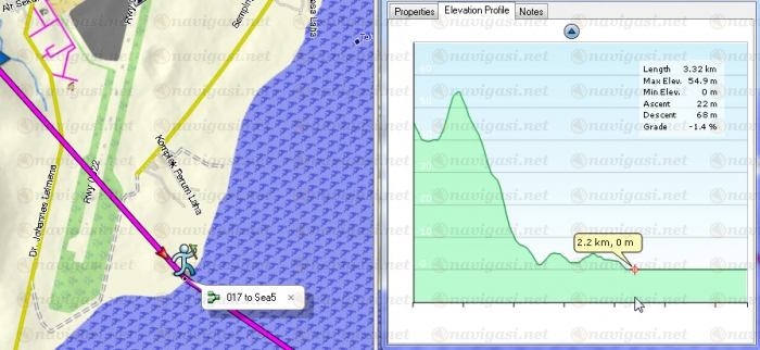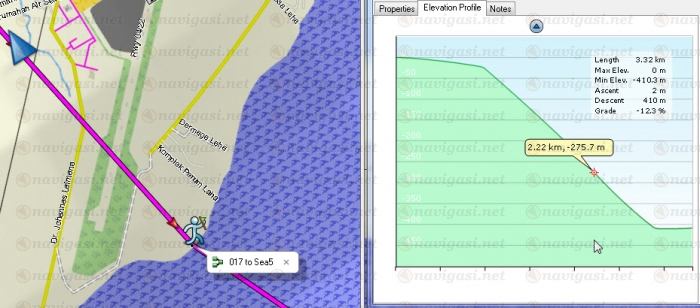 | |  | |  | | | dicoba membuat rute pada peta navnet plus DEM, pada titik batas pantai, data aster gdem menunjukkan bahwa batas pantai seharusnya lebih kedalam sedikit. | |  | |  |