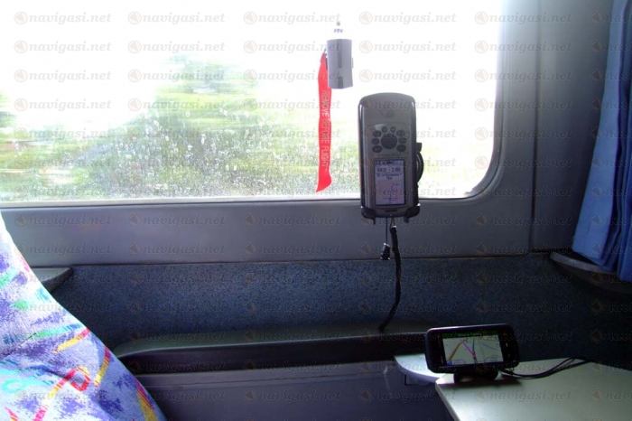 Saya sudah coba pada 2 photo di bawah ini menggunakan Garmin GPSmap 76CSx dan Garmin 10x yang dikonek pada Nokia 5800XM via Bluetooth menggunakan GMXT pada KA Parahiangan Bandung-Gambir dan KA Argo Muria Gambir-Semarang Tawang.