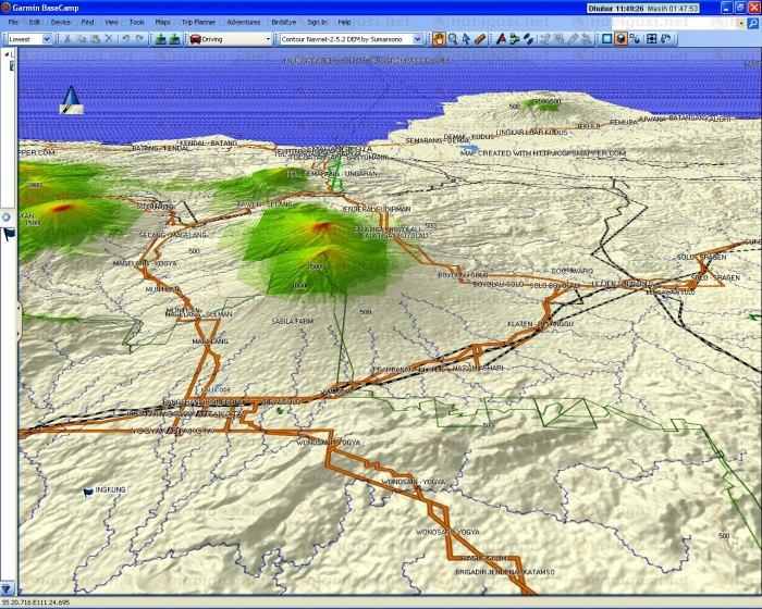 Gabungan antara Navigasi 2.52, Contour dan DEM