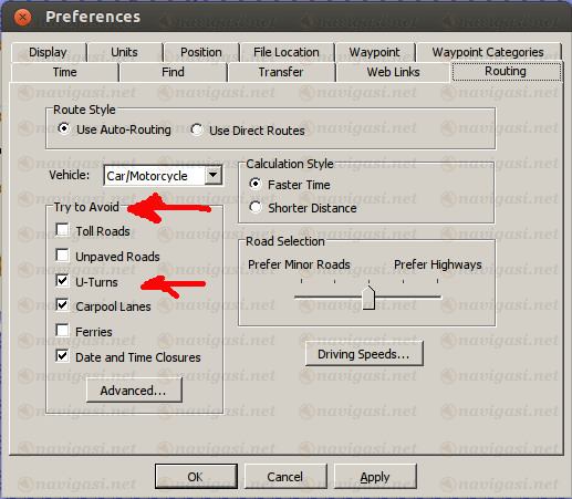 Ya kalau simulasi kan software ngitung terus menentukan track yang mesti dilalui selanjutnya jalan sesuai hasil hitungan simulasi. Sedangkan saat navigasi sesungguhnya bisa saja kita mengabaikan track yang disarankan oleh PNA kita. Jika feature avoidance U-turn dicentang maka PNA menghitung ulang track tanpa menyuruh kita berbalik arah, demikian sebaliknya jika avoidance tersebut kita kosongkan bisa jadi saran yang muncul meminta kita agar berbalik arah ("Make a U-turn").