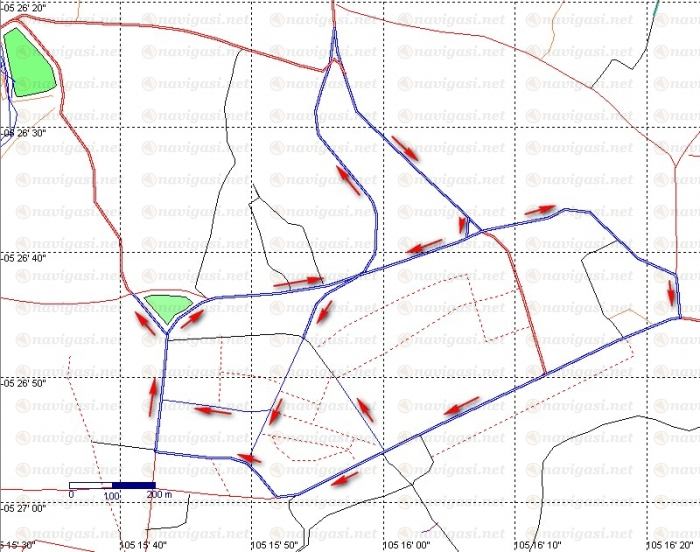 Jalan routing Satu arah adalah track yang berwarna biru, ikuti panah-panahnya.