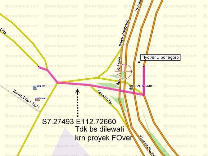 Revisi 2.37 .. dari Pasar Kembang tidak bs lgs belok kanan ke Banyu Urip Karena jalan tertutup pembangunan FOver (ruas jalan S7.27491 E112.72653)