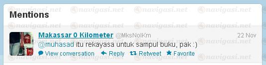Sampai sekarang masih banyak orang Makassar mengira titik 0 ada di Lapangan Karebosi.. Sampai ada yang bikin sampul buku seperti gambar yang saya posting itu.. Makanya pernah sempat pelototin tiap sudut lapangan dan nanya orang-orang dimana patok 0 tapi ndak ada yang tahu.. (malah ada yang nunjuk ke 7 kuburan di lapangan itu).. Akhirnya penasaran hilang setelah yang punya sampul buku itu bilang kalo fotonya cuma rekayasa..