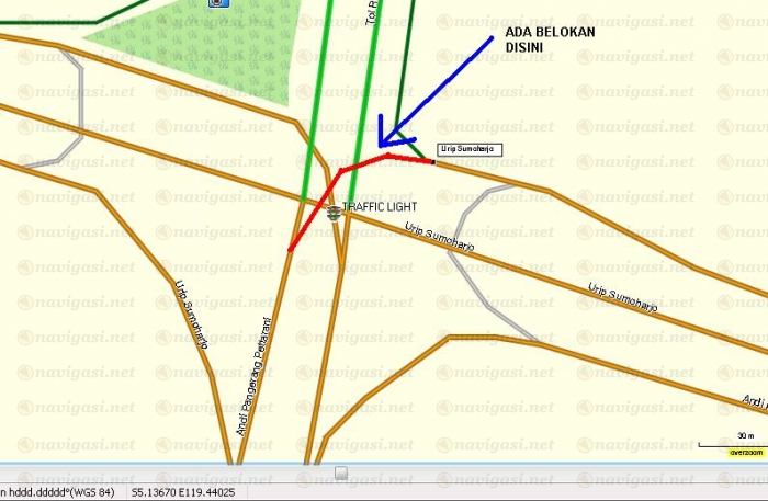 Routing di traffic light 024 di S5.20921 E119.45508 mengikuti arah panah.. gak boleh langsung belok kanan