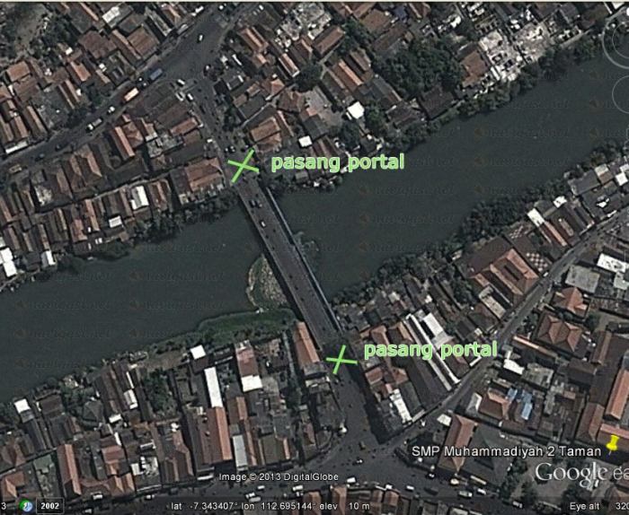 Saran: di sisi utara dan sisi selatan jembatan dipasang portal untuk sementara.