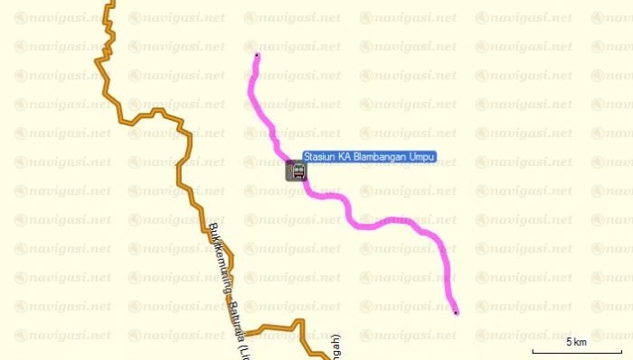 Koreksi jalan daerah Blambangan Umpu. Jalur warna pink sebenarnya adalah rel kereta api. Dalam peta nav.net sebagai collector road sehingga membingungkan saat auto route.