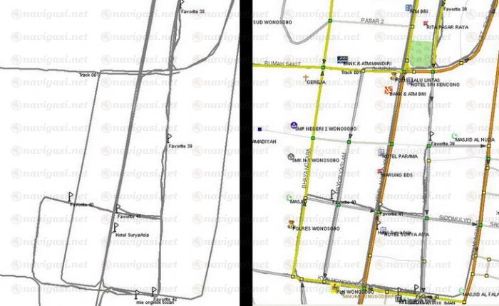 disini tidak semua jalan dibuat berdasarkan tracklog, tapi dibuat juga berdasarkan googlemap. sedangkan googlemap untuk area wonosobo ada pergeseran 10-15 meter ke selatan, jadi maaf kalau masih ada pergeseran, sebisa mungkin saya akan selalu memperbaiki kesalahan ini.