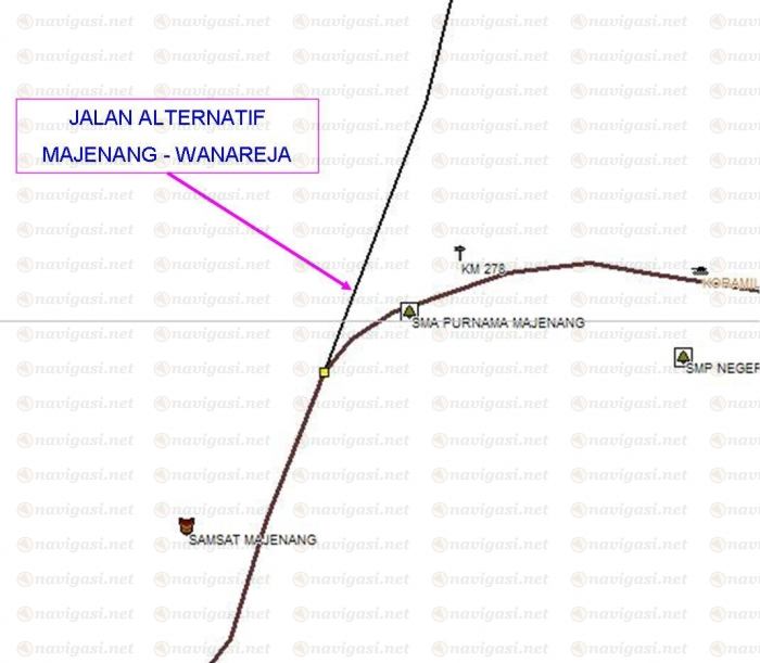 Menjelang keluar Majenang menuju Karangpucung/Wangon di KM. 275 ; Tolong di-connect jalan yang dari arah Utara dan juga yang ke arah Selatan sebagaimana saya lingkarin ; soanya ke-2 jalan ini adalah jalan alternatif dalam kota untuk melewati Majenang tanpa melalui Kota Majenang.