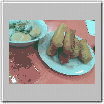 Cakue satu ini boleh dicoba. "Kresss...." saat digigit. Bagian luarnya garing, sementara lembut di dalamnya. Disajikan dengan saus nanas yang khas rasa manisnya. Sambil menikmati cakue yang mantap,...