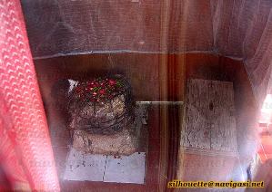 sambil duduk. batu itu sendiri terletak dalam sebuah cungkup dan