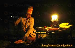 Penjual jagung bakar di pantai ini mulai buka di malam hari