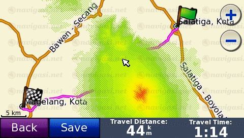 saya coba versi garminnya ke e72, ternyata untuk versi ini ada kelemahan ketika kita berada di pegunungan, gambar jalan tertutup oleh grafir topografi. jadi malah nggak keliatan jalannya.