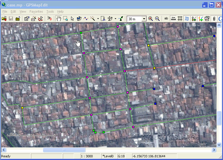 Tahap awal saya akan mencoba memberi contoh cara membuat track jalan dengan menggunakan aplikasi MapEdit. Adapun mengenai penentuan tipe jalan sudah pernah saya jelaskan pada forum yang lain .