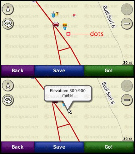 2. Semua icon POI pada peta navnet v1.63 yg baru ini, bila saya sentuh POI tersebut, menyebutkan "Elevation :...", bukan menyebutkan nama POI ybs.