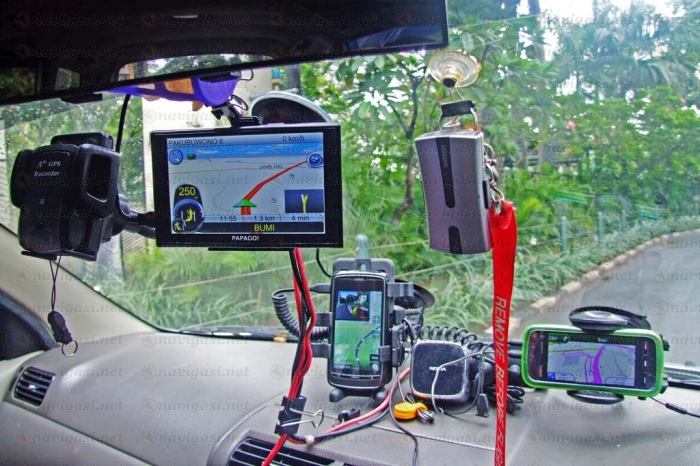 Selama di dalam mobil pribadi, tempelkan saja ke-5 Hardware GPSnya di windscreen. Kalo' dibilang norak, toh kita nggak dengar...
