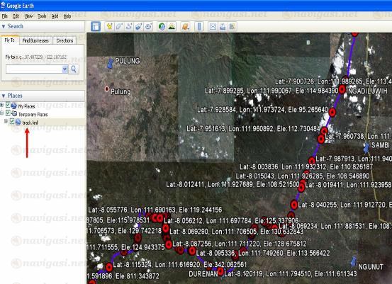 | |  | |  | | | Tampilan POI dan Track setelah dibuka di Google Earth | |  | |  |