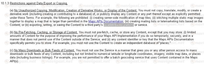 kalusul 10.1.3 c. berbicara tentang 'mass download', yang sy rasa navnet tidak melakukannya. kemungkinan besar para map developer navnet juga tidak melakukan karena perlu tempat penyimpanan yang sangat besar dan kecepatan koneksi internet yang sangat cepat (kalo pelan bisa gila).