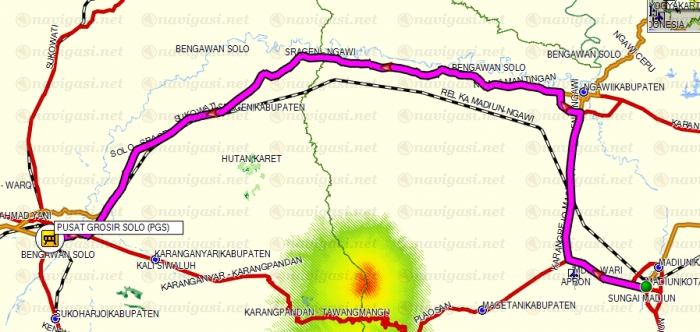 Kalo tidak error, gak mau routing, jadi hasilnya garis lurus dari madiun ke pgs.