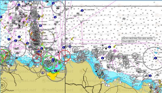 Bluechart.? jarang banget diupdate.. ada sungai yang gambarnya daratan dan sebaliknya.