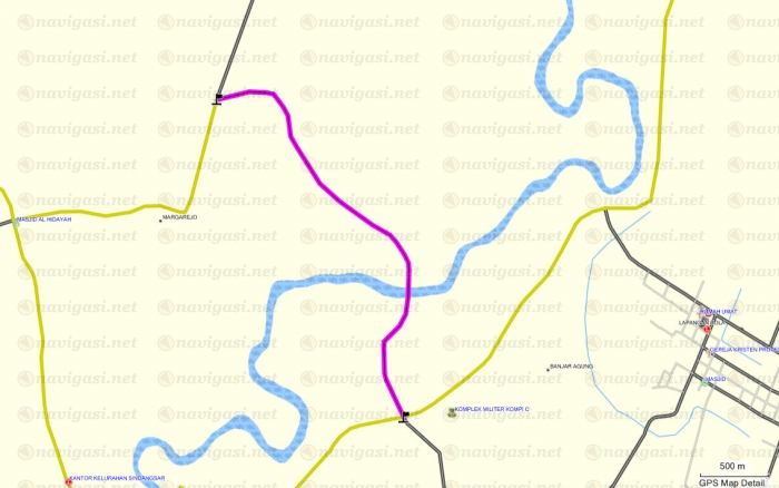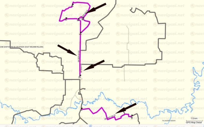 Beberapa keterangan ruas jalan sekitar Bunga Mayang (S4.58209 E104.87210) yang kurang tepat, sebaiknya dihilangkan