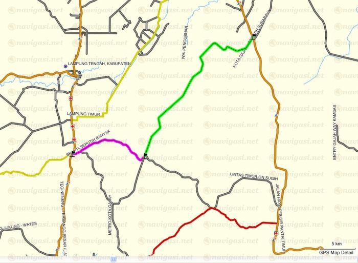 | |  | |  | | | Gunung Sugih - Kota Gajah (Warna pink) dan Kota Gajah – Seputih Banyak (warna hijau) | |  | |  |
