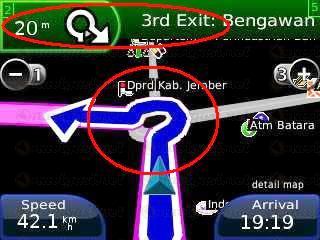 sedangkan di fitur lane assist nuvi menunjukkan rute yang benar