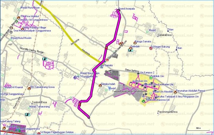 Hapus unpaved road dari S5.20451 E119.58949 ke S5.20319 E119.59749 (udah dipagari permanen ama investor lapangan golf)