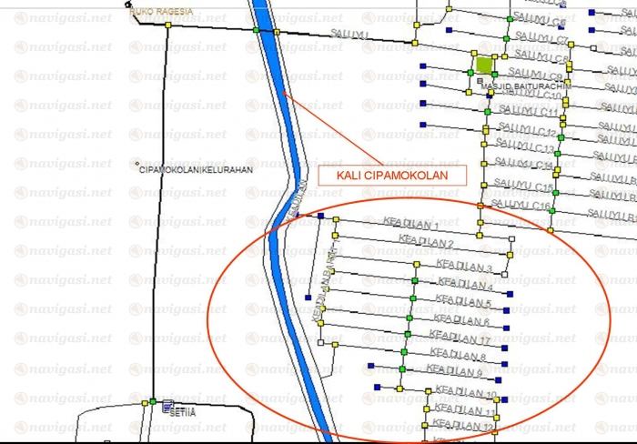 3. Nama Jalan disebelah Barat Kali Cipamokolan = Jl. Cipamokolan Kolot --> Kelas Residential