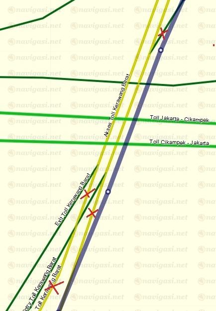 | |  | |  | | | Tolong hapus yang disilang merah. Jalur exit ke gerbang Karawang Barat 2 seharusnya tidak menyatu dengan jalur entry arah Jakarta dari gerbang Karawang Barat 1 | |  | |  |