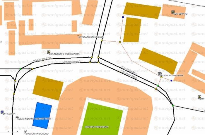Juga beberapa koreksi jalan mis: persimpangan, 2 lajur, jalan one-way, dsb.