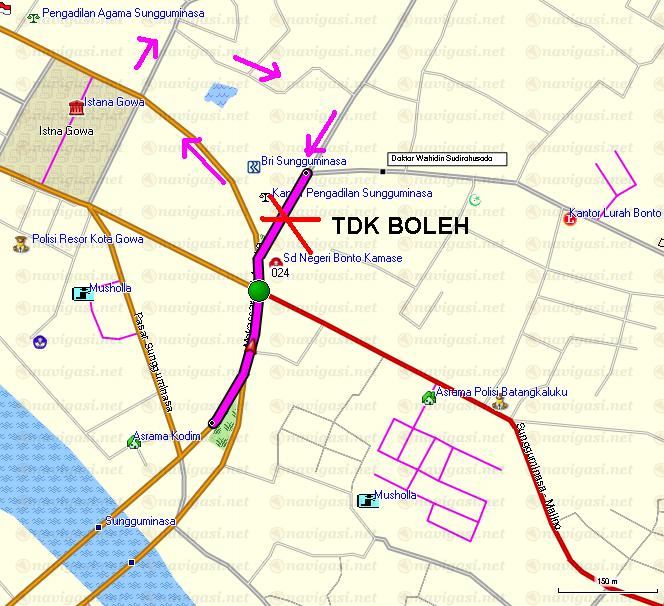 Di traffic light S5.14684 E119.42501, dari arah selatan Jl. Veteran Selatan tidak boleh belok kanan (ke barat) ke Jl. Sungai Saddang Baru