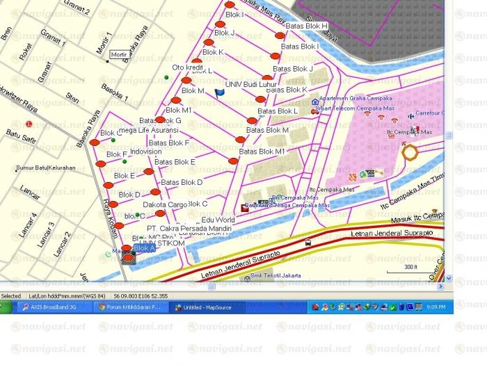 maaf om saya cocokkan dengan mapsource dan unit GPS garmin,tidak ada yang melenceng kecuali SAint Monica Jakarta School , apa gara-gara mapsource yang terbaru versi 6.16.3 om yang lalu biasanya pake yang 6.13.3