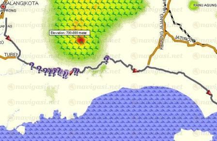 ruas jalan S7 57.581 E112 35.978 hingga S7 57.737 E112 36.108 adalah jalan bukit tanggul, bukan puncak mandala