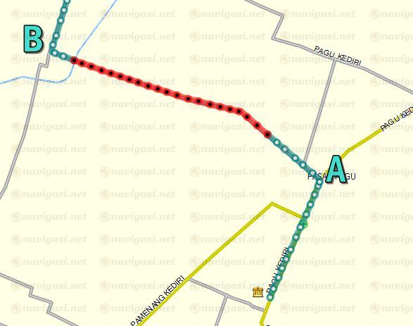 Ada sedikit saran, kemarin sy melawati daerah (A) = S7.76488 E112.08766 - (B) = S7.74928 E112.05302 kelas jalannya residental Street dan polygon warna merah adalah jalan unpaved_road (jalan akses ke ladang tebu). hanya dekat pintu masuk(daerah A) dan pintu keluar (daerah B) yang beraspal.