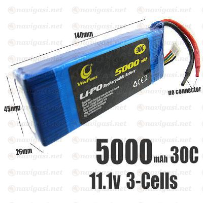 Karena baterry LiPo 3 sel ( 11,1 volt ) dgn 5000 mAH ( 5 AH ) nilai C = 30 dimana hitungan ketahanan menerima beban adalah kapasitas mAH dikalikan nilai C ( 5 Ampere X 30 = 150 ampere ) namun berapa lama ketahanannya tergantung dari nilai kapasitas per jam nya (mAH / AH )